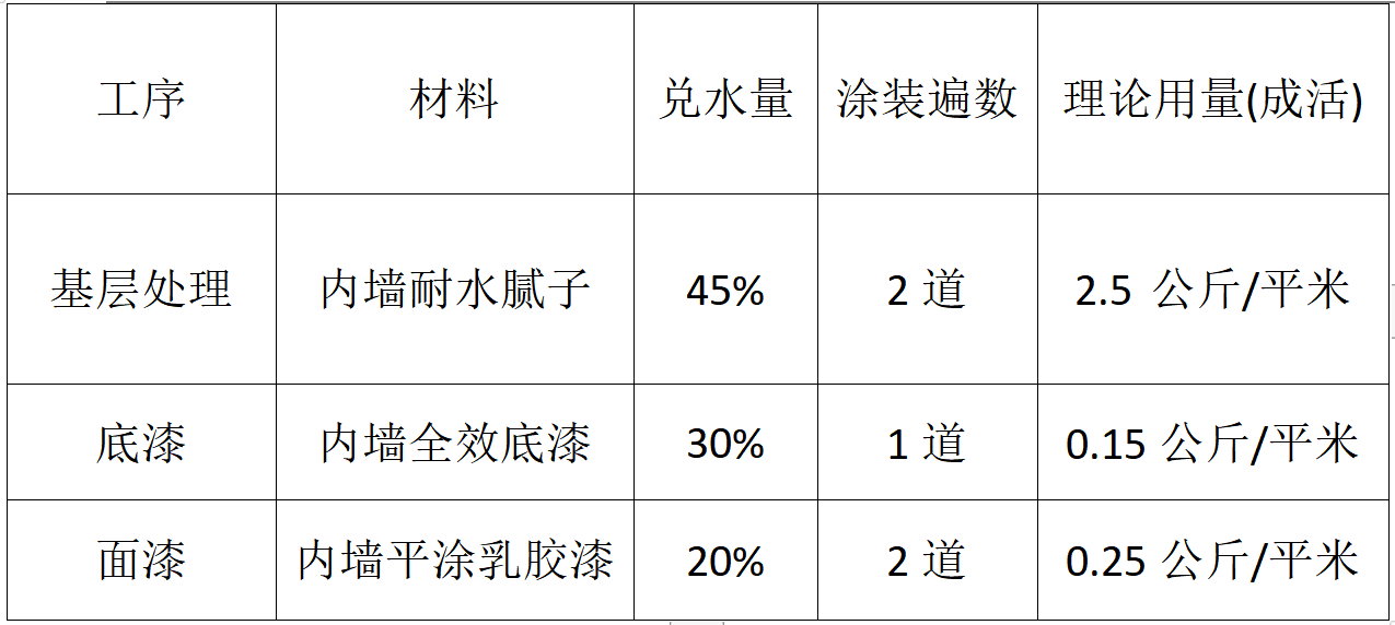 注:面漆用量是以白色漆测算的,其它颜色应根据具体情况而定。