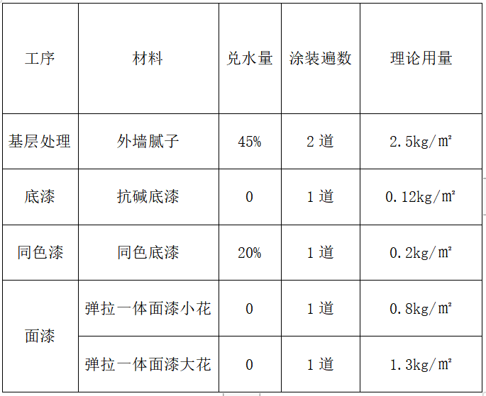 注:面漆用量是以白色漆测算的,其它颜色应根据具体情况而定。