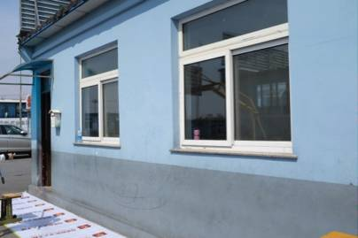 ▲校内墙面多为蓝灰色搭配,单调乏味