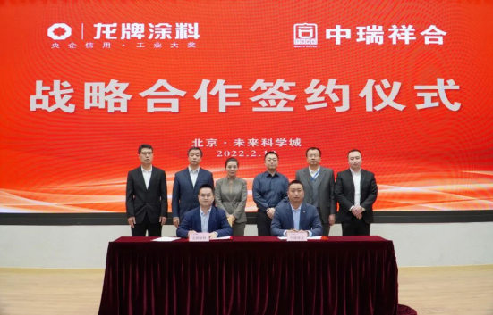 2月10日,龙牌涂料与北京中瑞祥合建筑工程有限公司(下称中瑞祥合)战略合作签约仪式在北新科学院举行。龙牌涂料总经理唐智谋与中瑞祥合运营中心总经理董鑫签署战略合作协议。北新涂料总经理陈燕见证签约。根据协议,双方将在工装应用、产品推广等方面开展深入合作。
