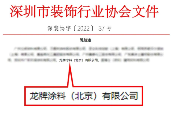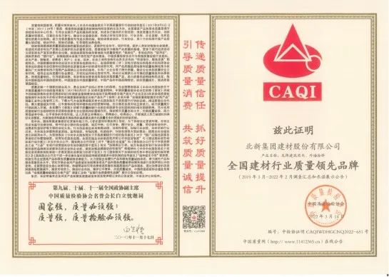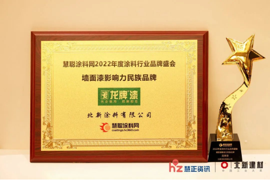 2022年3月,北新涂料旗下龙牌涂料凭借过硬的产品品质、良好的企业信誉荣获中国质量检验协会(CAQI)颁发的 “全国建材行业质量领先品牌”荣誉,龙牌涂料产品质量再次获得官方权威机构的高度认可。